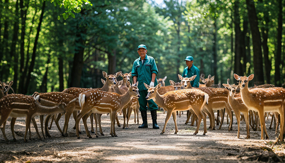其中“京西鹿谷梅花鹿生態(tài)養(yǎng)殖繁育基地”,群山環(huán)繞、空氣清新、水源優(yōu)質(zhì)且充足,為梅花鹿的生長(zhǎng)營(yíng)造了良好的自然條件。基地內(nèi)植被豐富,有大量梅花鹿喜愛的嫩草和樹葉,充足的食物資源保障了梅花鹿飲食的多樣性。同時(shí)開闊的空間和適宜的氣候條件,為梅花鹿的生存提供的得天獨(dú)厚的優(yōu)勢(shì),使其能夠自由地繁衍生息。